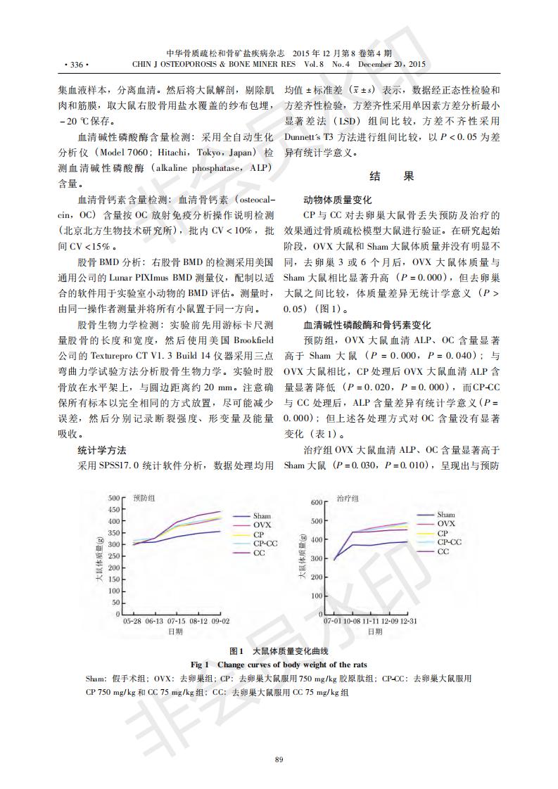 Preventive and therapeutic effects of collagen peptide and calcium citrate on bone loss in ovariecto