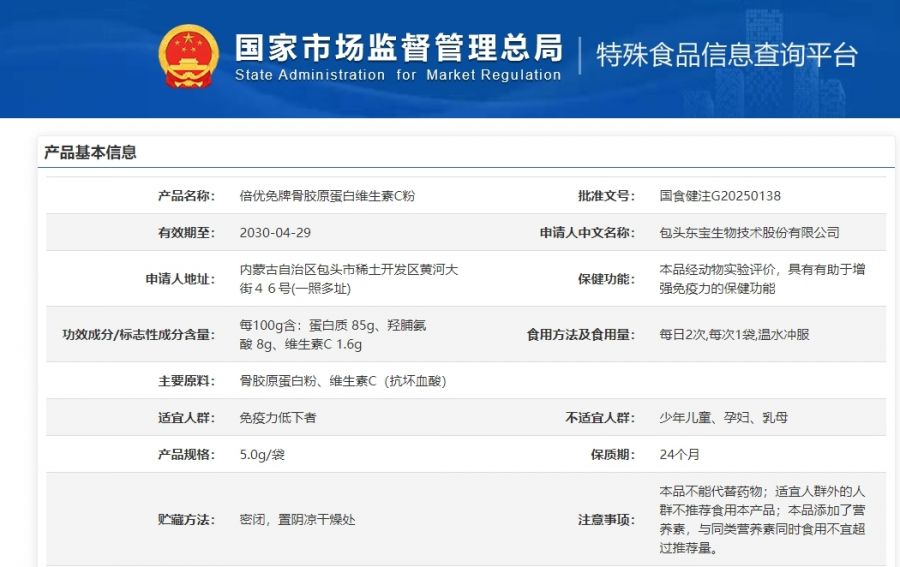 作為深耕膠原60余年的東寶生物推出的膠原+系列產(chǎn)品“倍優(yōu)免牌骨膠原蛋白維生素C粉”(注冊批準(zhǔn)證號(hào):國食健注G20250138),正是在這樣的市場背景下孕育而生。本品具有“有助于增強(qiáng)免疫力”的保健功能,可作為亞健康人群、中老年人日常營養(yǎng)補(bǔ)充的選擇,也有助于滿足關(guān)注健康管理的青年及職場人士對(duì)提升狀態(tài)的需求。